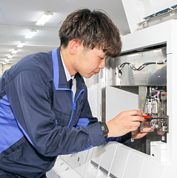 自社装置の修理や定期点検、血糖分析装置などの納品や、検体検査自動化システム(LAS)の設置がメインの業務です。技術や知識はもちろんですが、何よりお客様とのコミュニケーションが大切だと感じています。難易度の高い修理対応など大変だと感じる場面もありますが、お客様から感謝の言葉を直接いただけたときにはとてもやりがいを感じます。また、全国の病院に設置するLASの設定業務も私が一部担当しています。施設ごとの装置構成や運用方法に合わせて設定をする必要があるため、回数を重ねるごとに知識や経験が増えていき、日々成長を実感することができます。